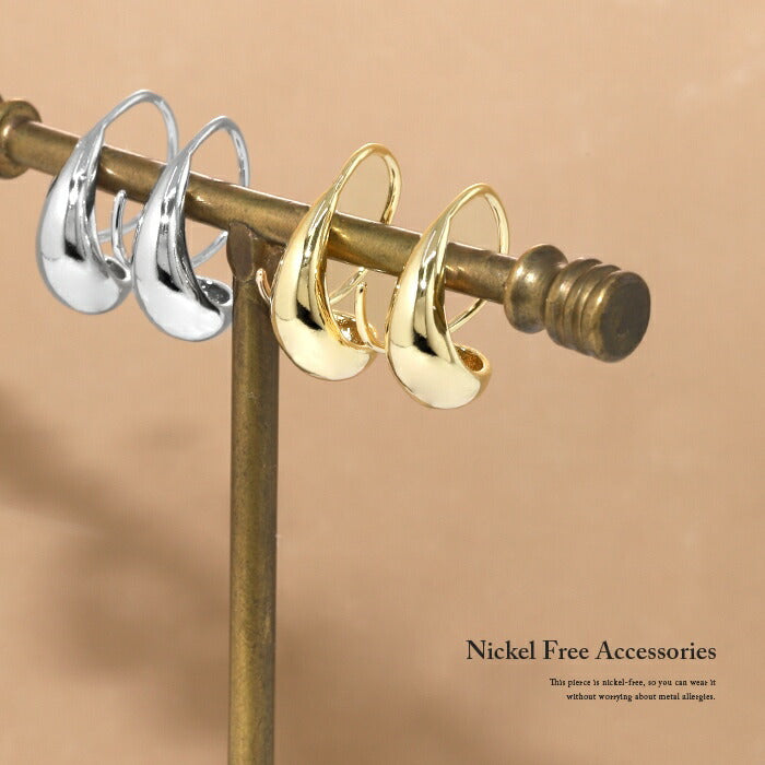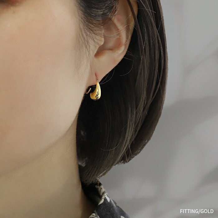 fp-059 ピアス ドロップ 18k 18金 金属アレルギー フープ フック ニッケルフリー 18kコーティング レディース セカンドピアス キャッチレス シンプル シルバー ゴールド ロジウムコーティング ティアドロップ 大人 上品 きれいめ 【両耳用・2個売り】