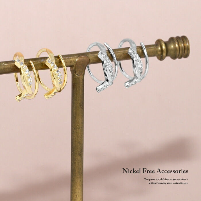 fp-062 ピアス 18k 18金 金属アレルギー フープ フック ニッケルフリー 18kコーティング レディース セカンドピアス キャッチレス シンプル シルバー ゴールド キュービックジルコニア キラキラ 大人 上品 かわいい きれいめ 【両耳用・2個売り】
