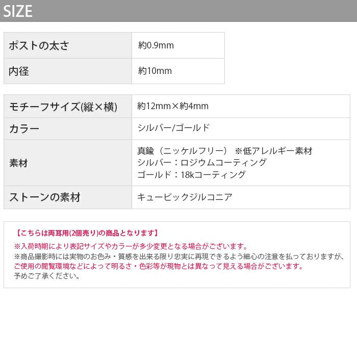 【両耳用・2個売り】ピアス フープ フック キュービックジルコニア ニッケルフリー 18Kコーティング 金属アレルギー対応 アクセサリーカテ0078 fp-062