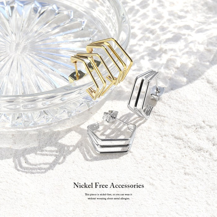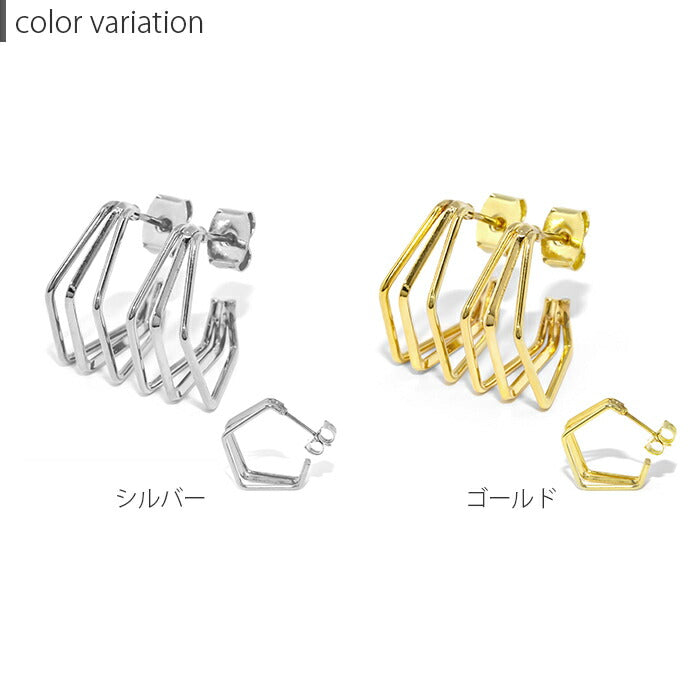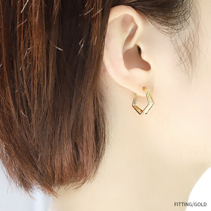 【両耳用・2個売り】ピアス 5角形 ペンタゴン Pentagons フープ 18金 コーティング 金属アレルギー ニッケルフリー スタッドピアス アクセサリーカテ0084 fp-069
