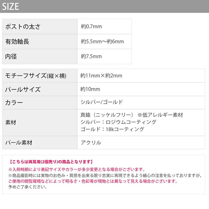 耳たぶが厚めの方やホールが上のほうに空いている方はサイズをよくご確認の上ご検討くださいませ。