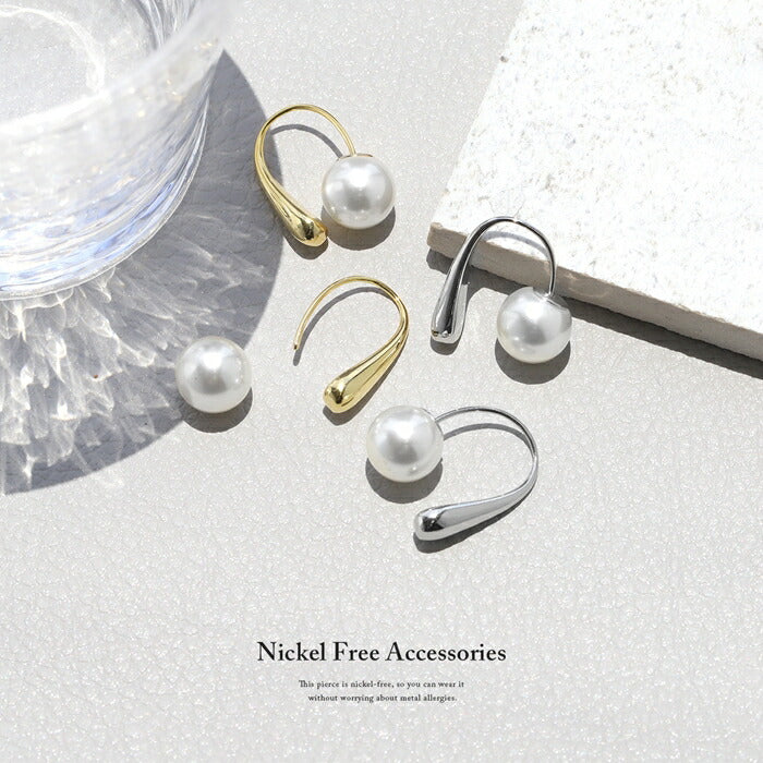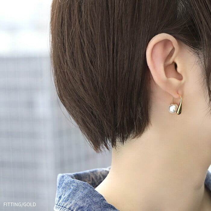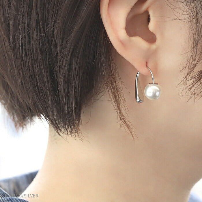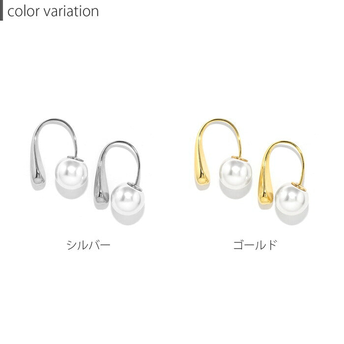 【両耳用・2個売り】 18kコーティング 一粒 パール 上品 フック パール リバーシブル カーブ アクセサリーカテ0102 fp-087