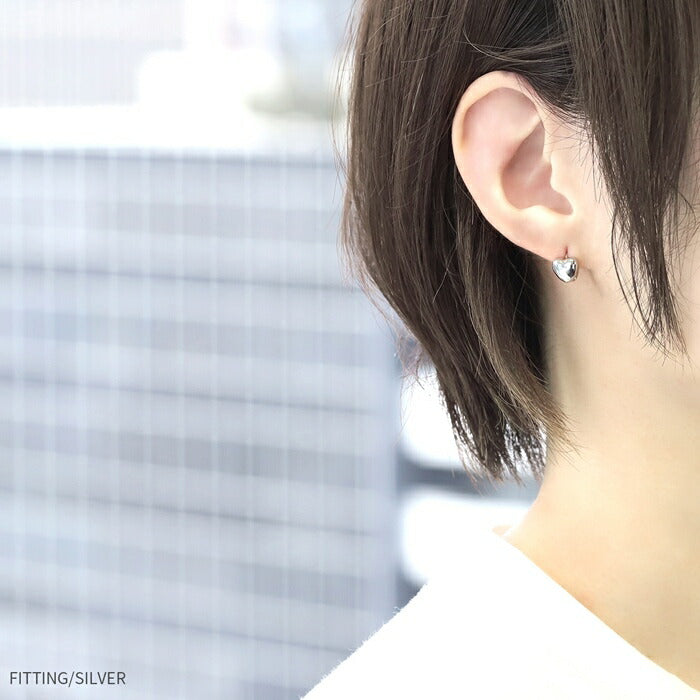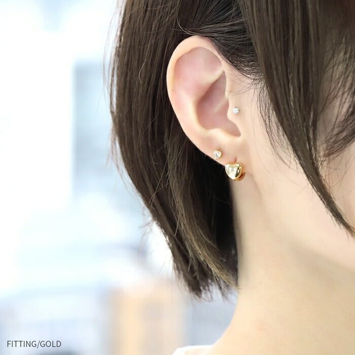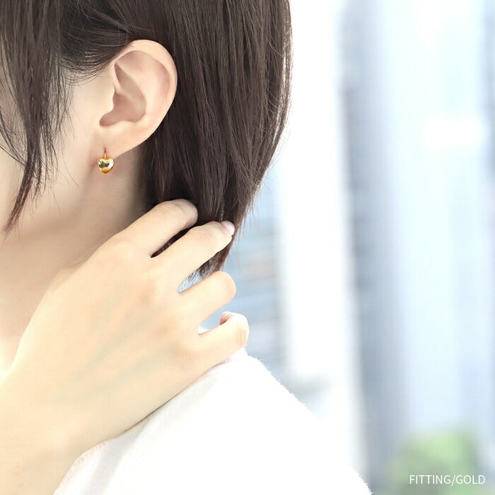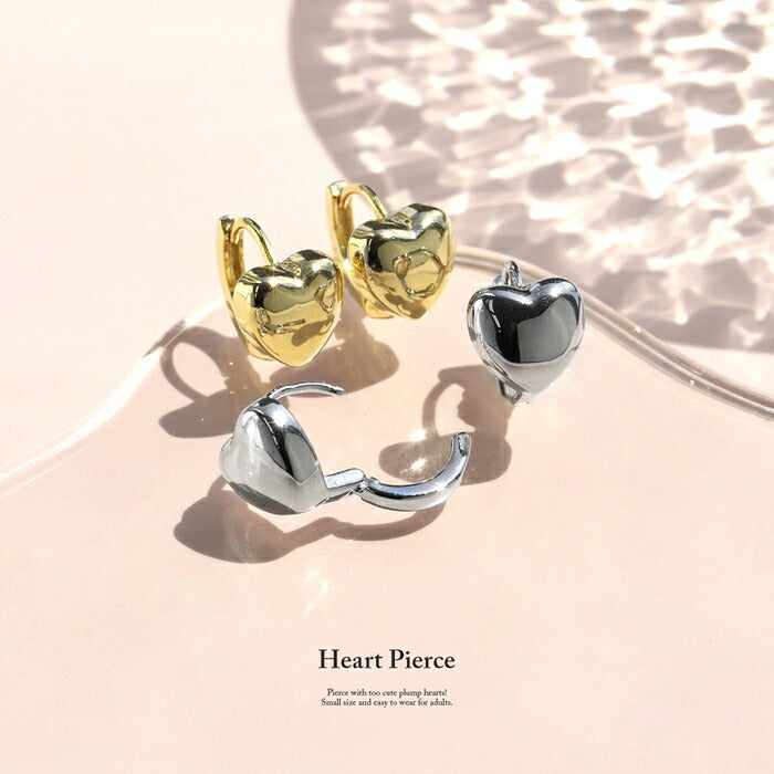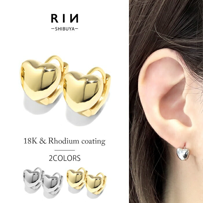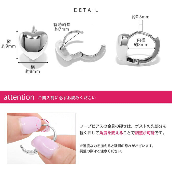 【両耳用・2個売り】ハートキャッチレス heart フープピアス 18金 ロジウムコーティング ワンタッチピアス アクセサリーカテ0109 fp-094