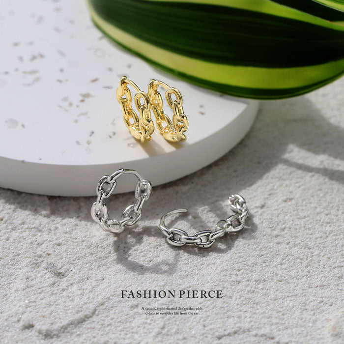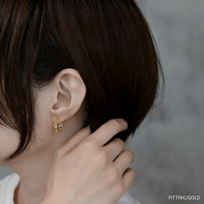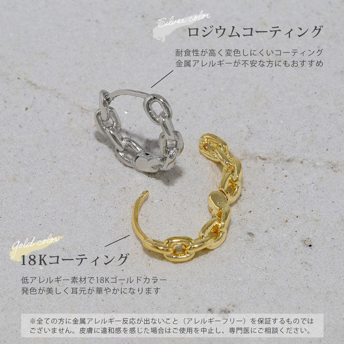 fp-104 ピアス レディース フープピアス 低アレルギー リングピアス キャッチレス チェーンリング シルバー ゴールド ニッケルフリー ロジウムコーティング 18金 18kコーティング かわいい シンプル 耳たぶ 【両耳用・2個売り】