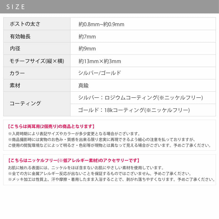 シルバー:ロジウムコーティング(※ニッケルフリー)