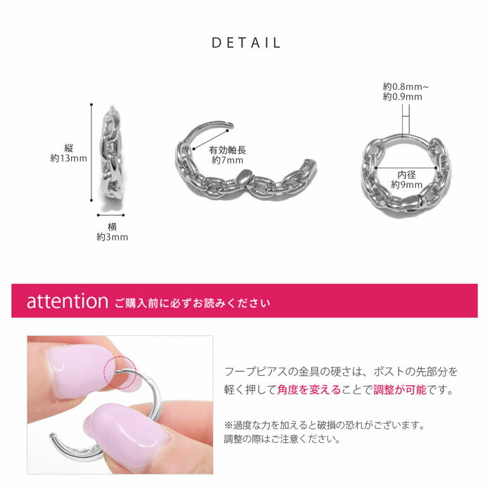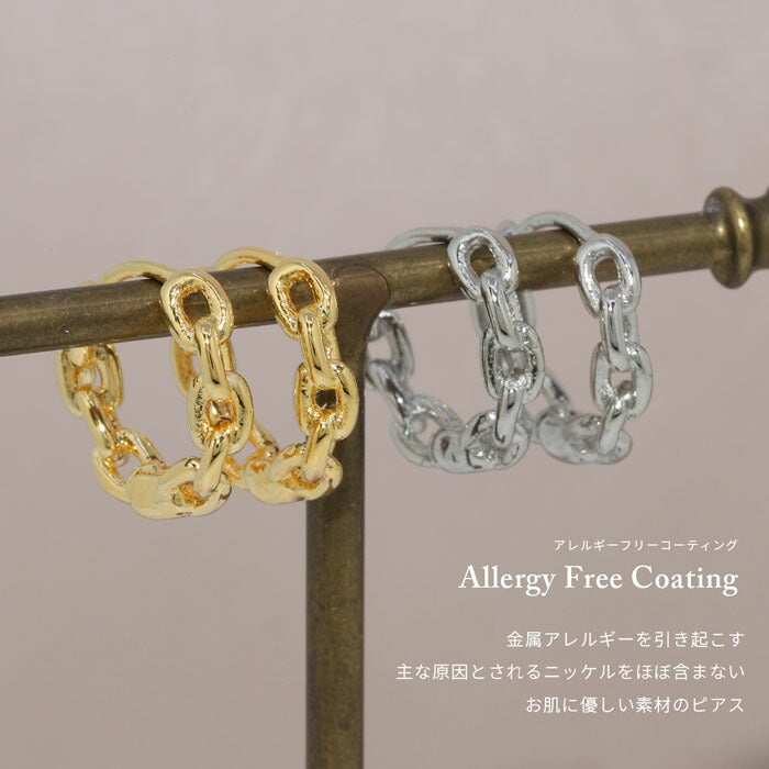 ピアス フープピアス チェーンリング ロジウムコーティング 18kコーティング アクセサリーカテ0119 fp-104
