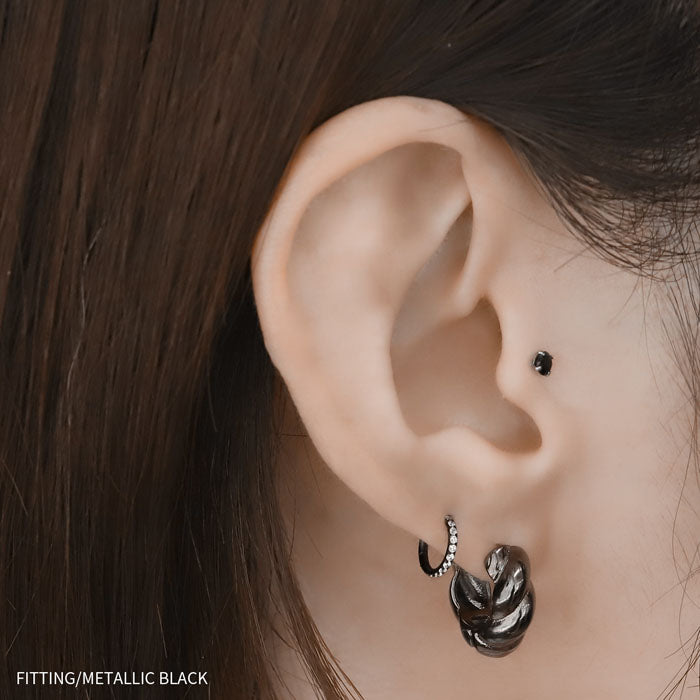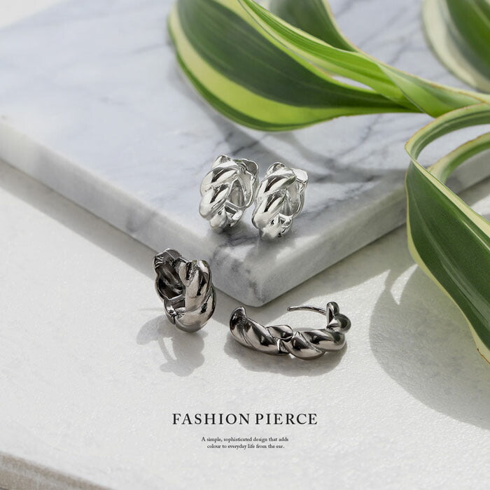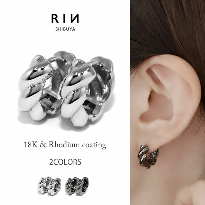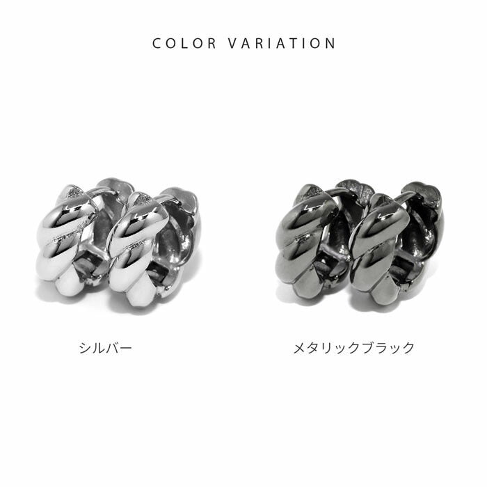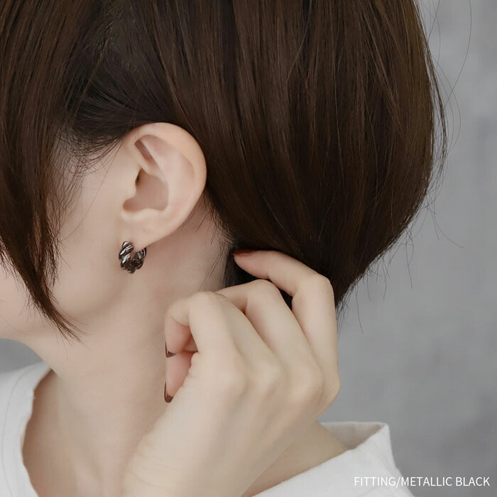 fp-105 ピアス レディース フープピアス 低アレルギー リングピアス キャッチレス ツイストリング ツイスト ねじれ シルバー メタリックブラック ニッケルフリー ロジウムコーティング かわいい シンプル 耳たぶ 【両耳用・2個売り】