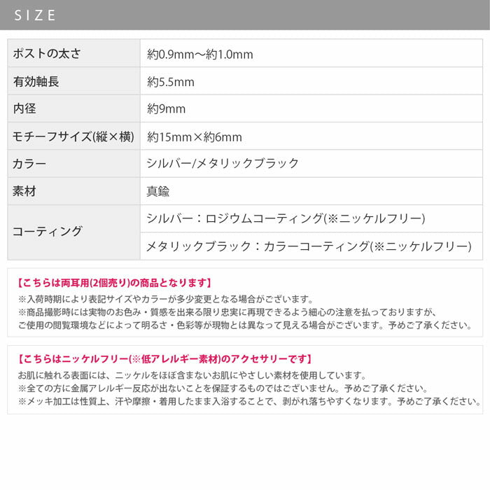 耳たぶが厚めの方やホールが上のほうに空いている方はサイズをよくご確認の上ご検討くださいませ。