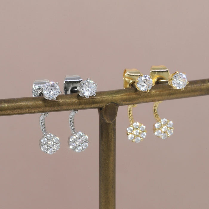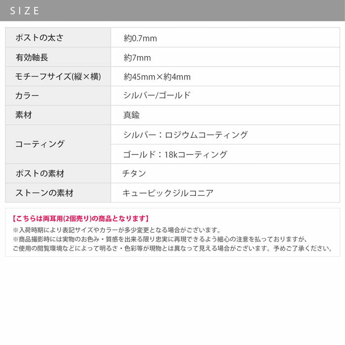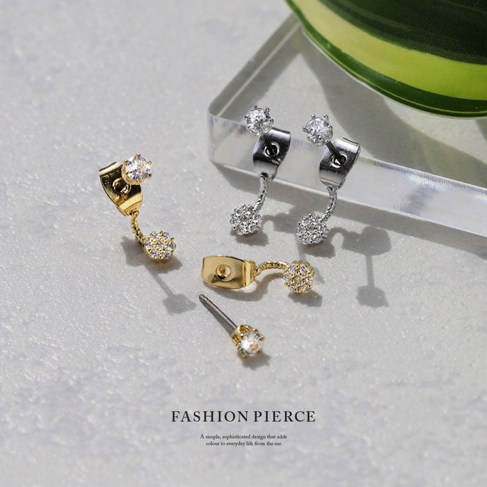 【両耳用・2個売り】 ダブルジュエルピアス 18金 ロジウムコーティング チタンポスト アクセサリーカテ0121 fp-106