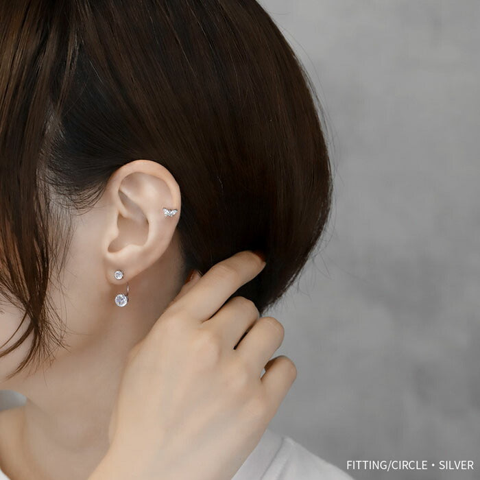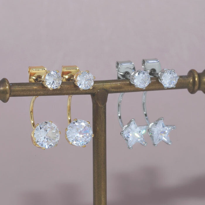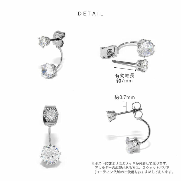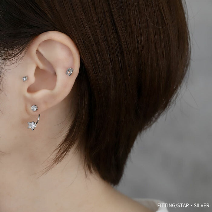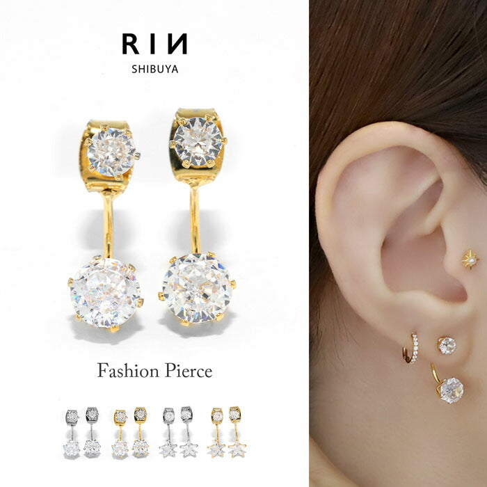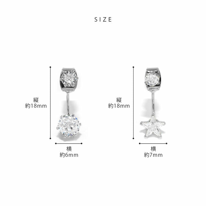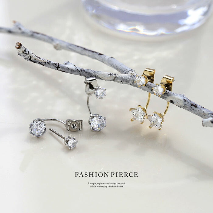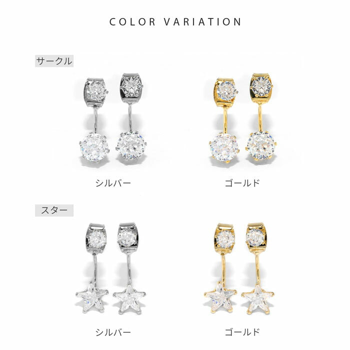 【両耳用・2個売り】 ダブルジュエルピアス 星 スタージュエル 18金 ロジウムコーティング チタンポスト アクセサリーカテ0122 fp-107