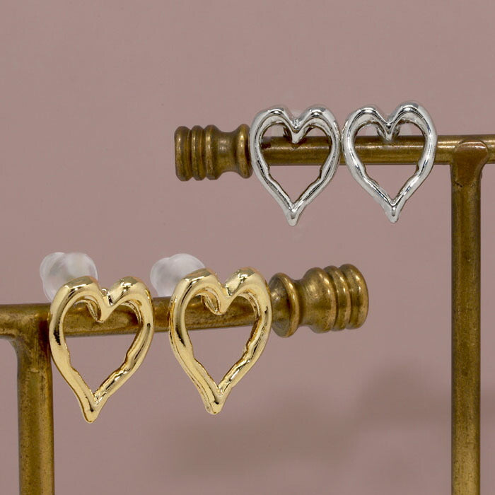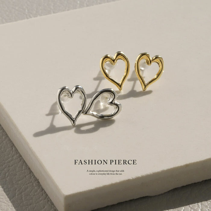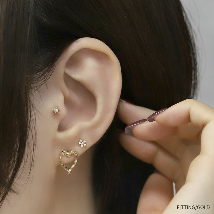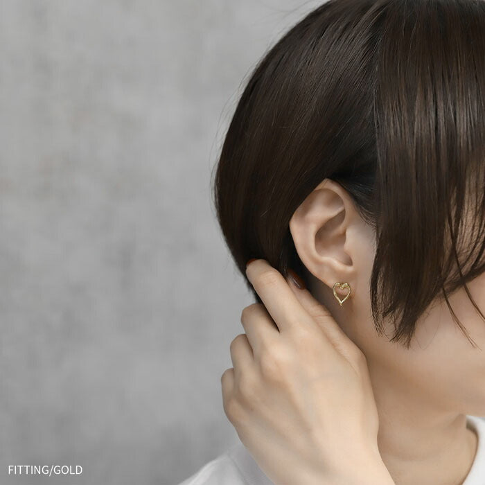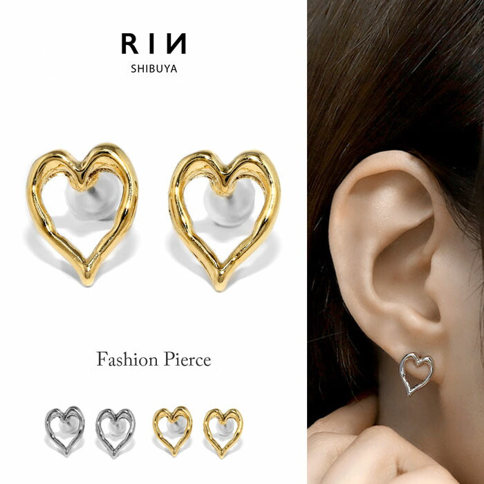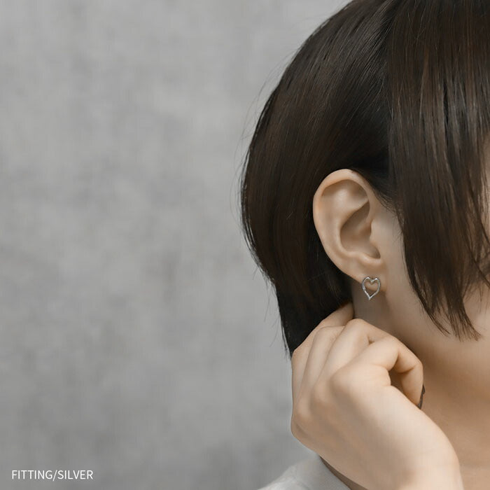 【両耳用・2個売り】 オープンハートピアス 16金 ロジウムコーティング チタンポスト アクセサリーカテ0124 fp-108