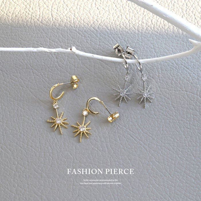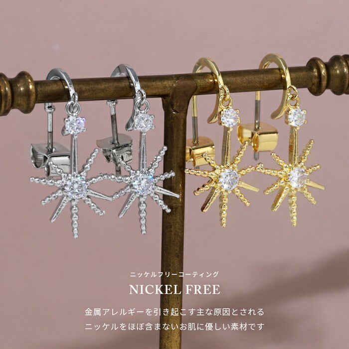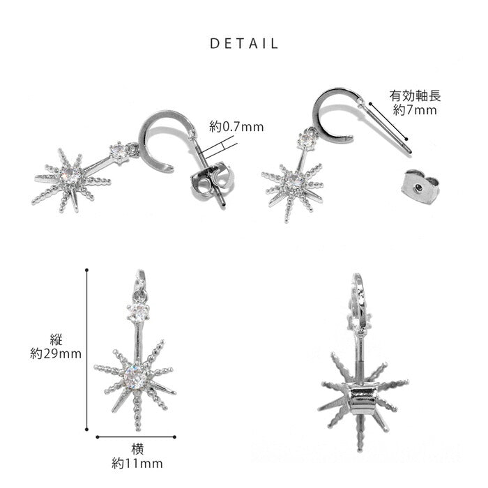 【両耳用・2個売り】 星 スターライト ピアス 18k ロジウムコーティング チタンポスト アクセサリーカテ0126 fp-110