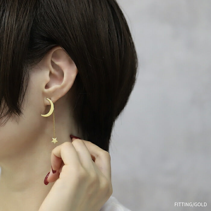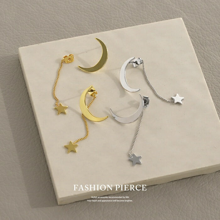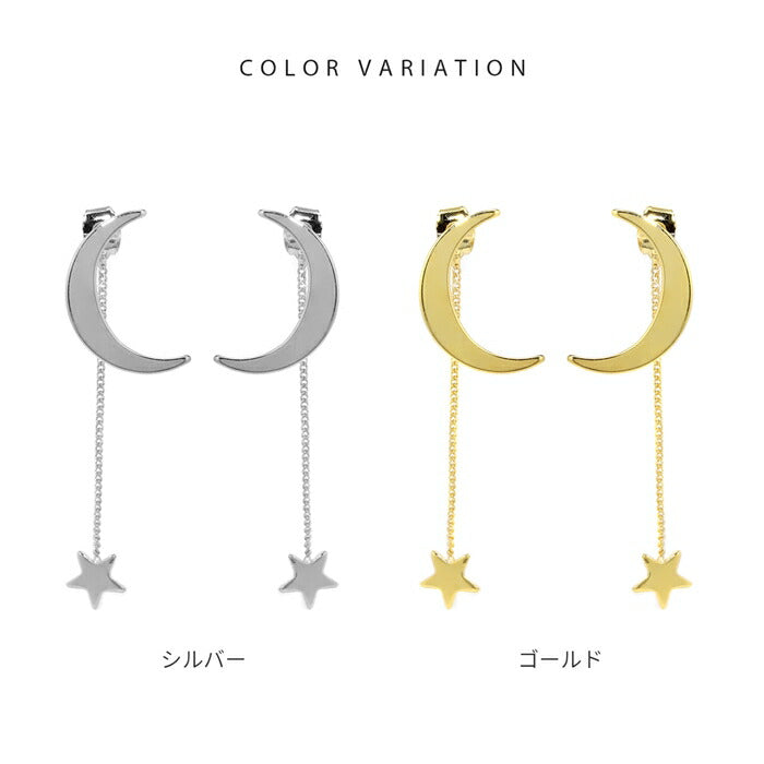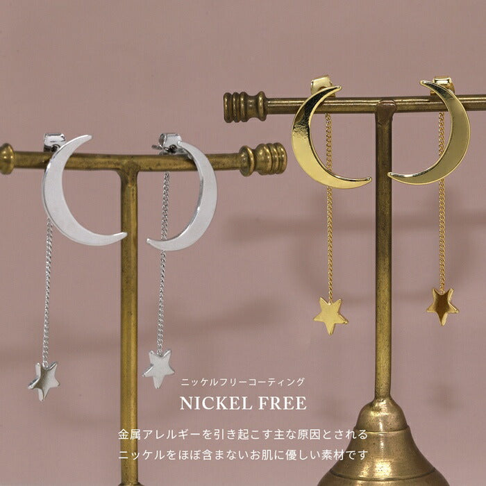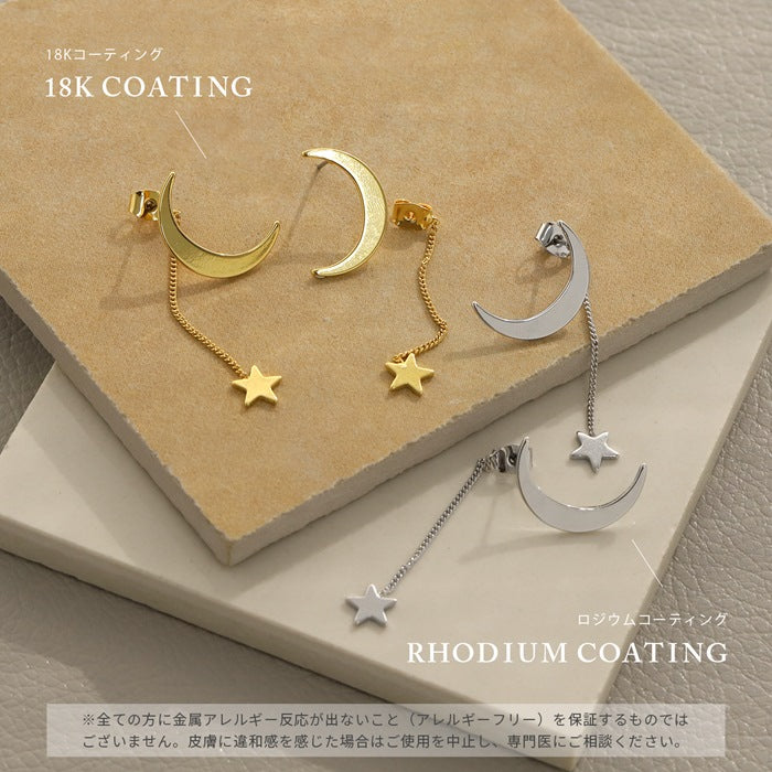 【両耳用・2個売り】ピアス 18金コーティング 月 星 揺れる スター ムーン アクセサリーカテ0128 fp-112