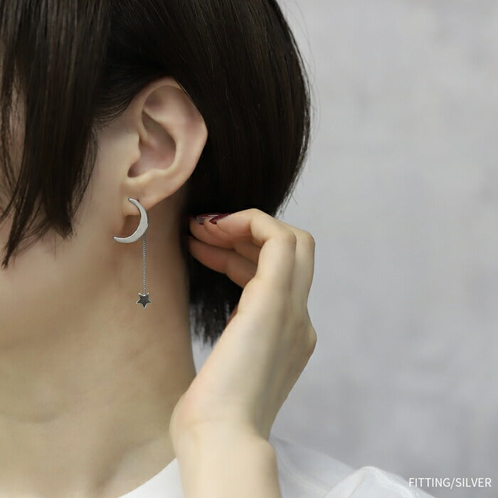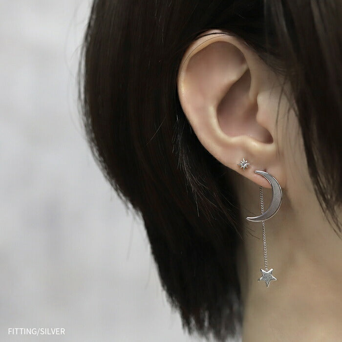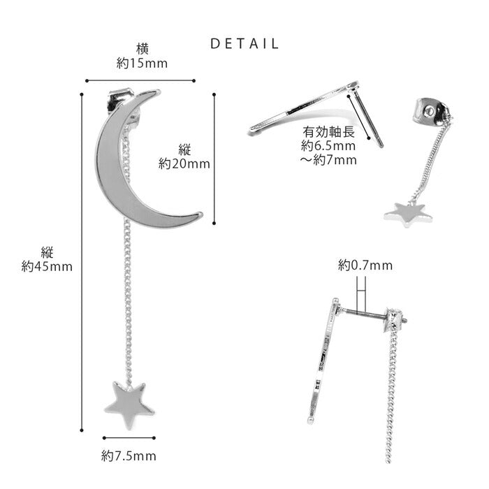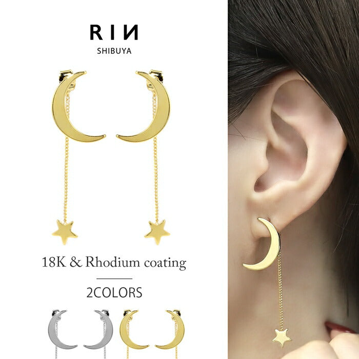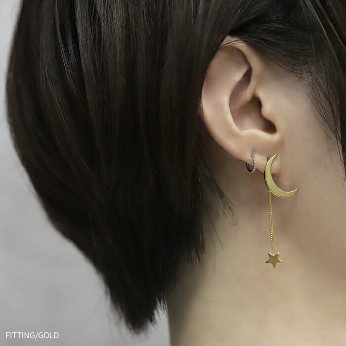 fp-112 ピアス 18k 18金 金属アレルギー ニッケルフリー 月 星 ムーン スター 揺れる 大ぶり レディース 普段使い シンプル シルバー ゴールドセカンドピアス フォーマル 耳たぶ ロジウムコーティング 【両耳用・2個売り】