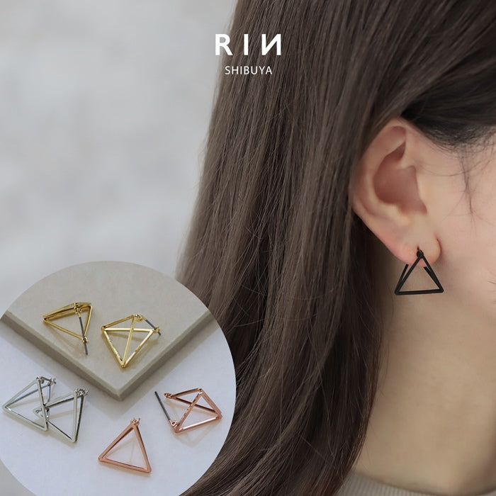 fp-113 ピアス 三角 トライアングル マットブラック 金属アレルギー キャッチレス レディース 普段使い シンプル セカンドピアス フォーマル おしゃれ 耳たぶ 【両耳用・2個売り】