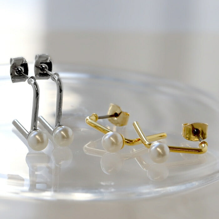 【両耳用・2個売り】 ピアス 18kコーティング シルバー ゴールド パール 一粒 チタンポスト アクセサリーカテ0130 fp-114