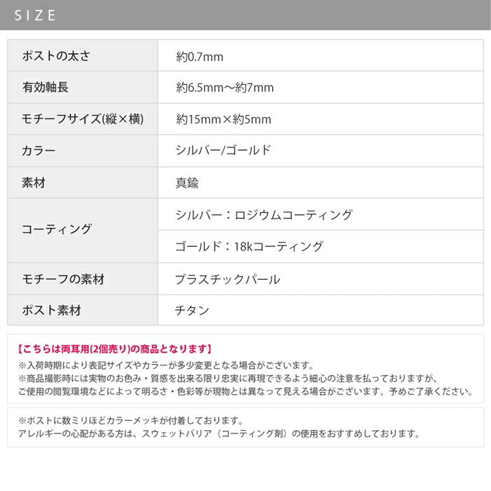 fp-114 ピアス 18kコーティング シルバー ゴールド パール 一粒 レディース 普段 使い チタンピアス おしゃれ かわいい シンプル 上品 きれいめ 耳たぶ ロジウムコーティング セット 【両耳用・2個売り】