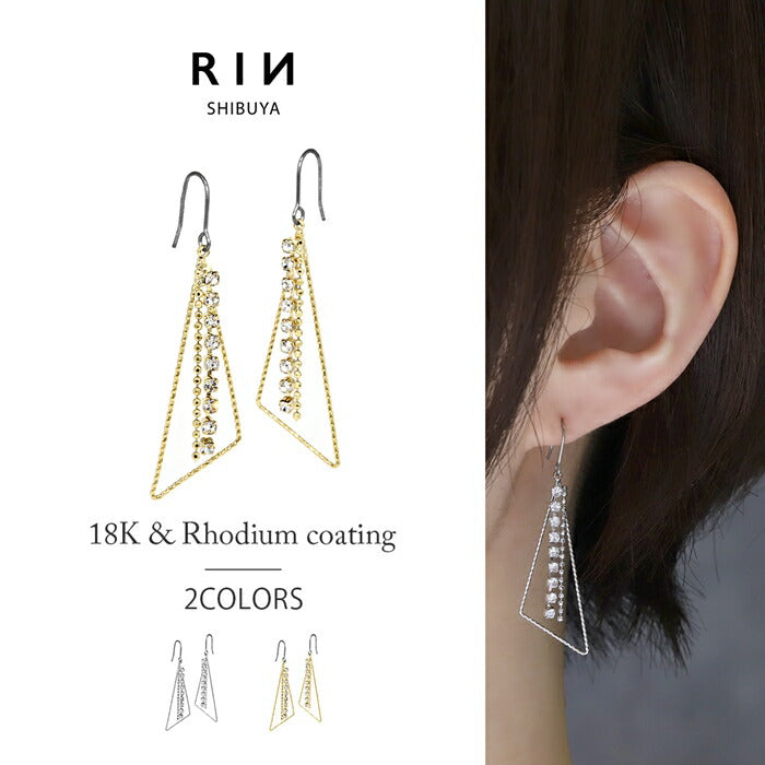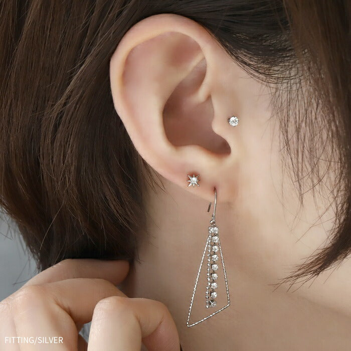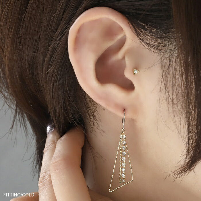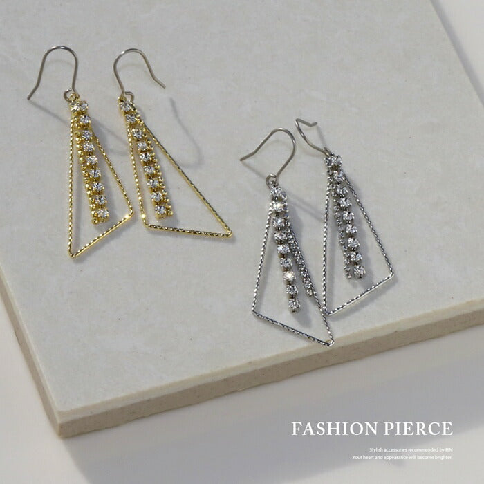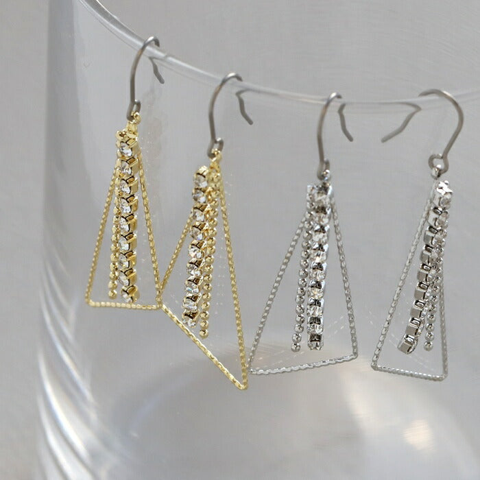 fp-117 ピアス 揺れる 18kコーティング シルバー ゴールド レディース 普段 使い おしゃれ かわいい シンプル キラキラ 上品 きれいめ 三角 トライアングル 耳たぶ ロジウムコーティング セット 【両耳用・2個売り】