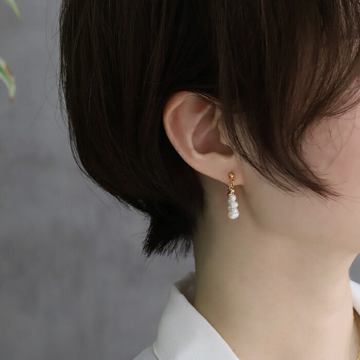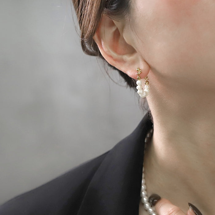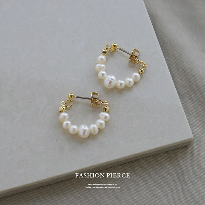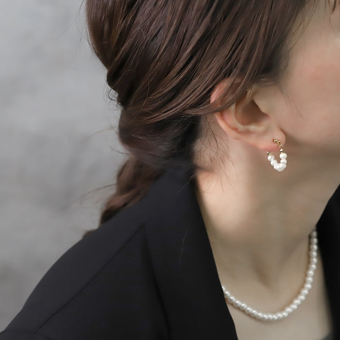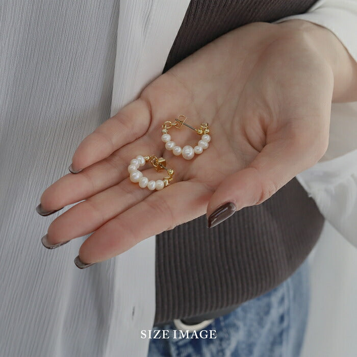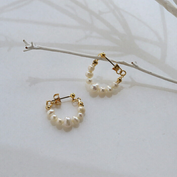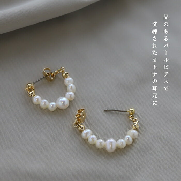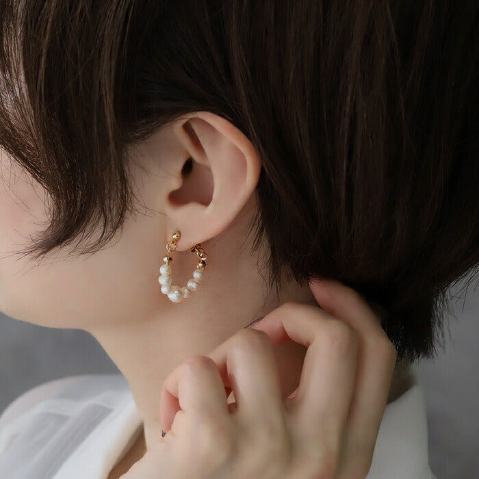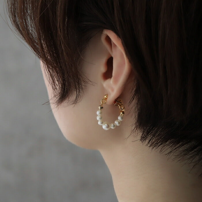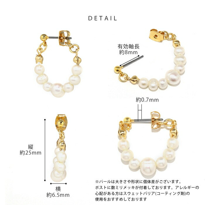 【両耳用・2個売り】 パール 粒ライン パールフープピアス チタンポスト 16金 アクセサリーカテ0136 fp-120
