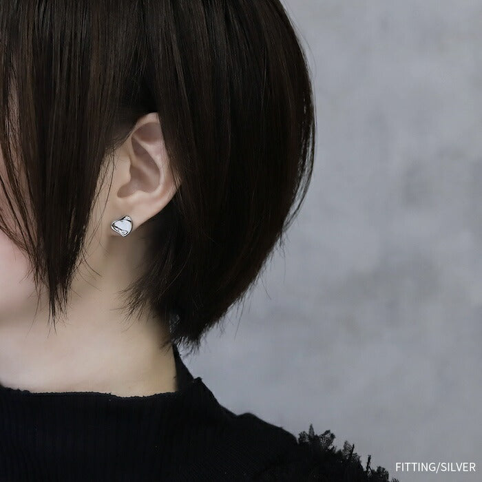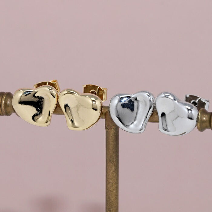 【両耳用・2個売り】ピアス 18金コーティング メタルハート はーと スタッド チタンポスト アクセサリーカテ0137 fp-121