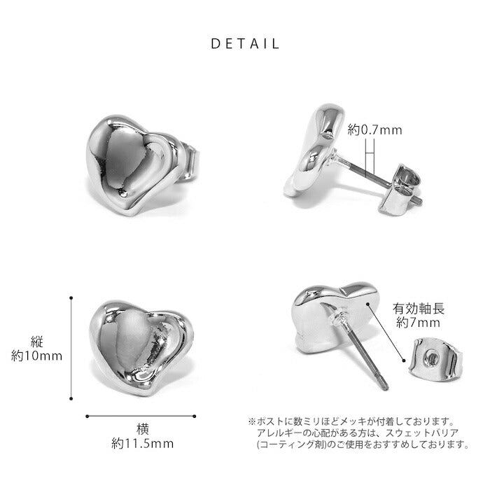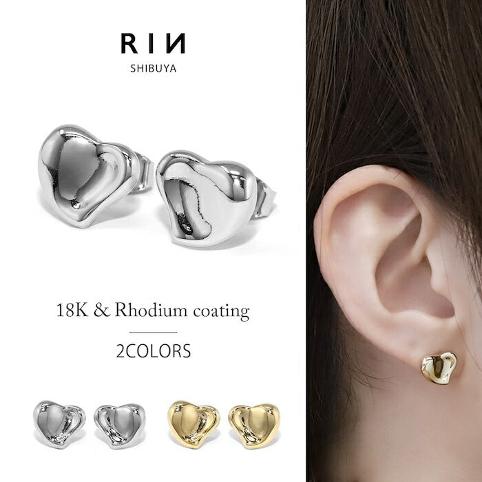 fp-121 ピアス 金属アレルギー 18k 18金 ハート つけっぱなし 18kコーティング レディース シンプル シルバー ゴールド おしゃれ かわいい 上品 きれいめ かわいい セカンドピアス 普段使い 耳たぶ ロジウムコーティング セット 【両耳用・2個売り】