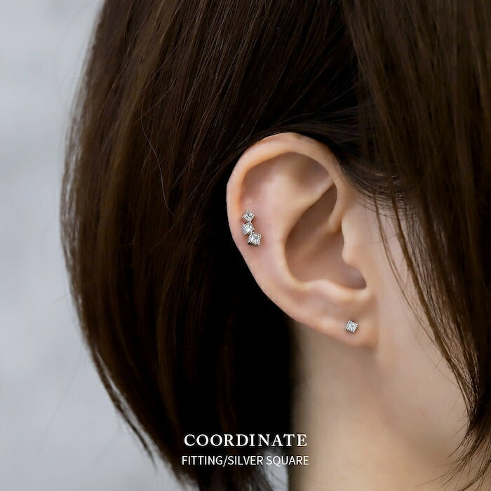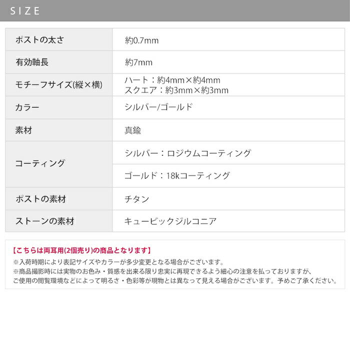 fp-125 ピアス 金属アレルギー ハート スクエア 18k 18金 つけっぱなし 18kコーティング レディース シンプル シルバー ゴールド かわいい セカンドピアス 普段使い 金属アレルギー対応 チタンピアス キュービックジルコニア セット 【両耳用・2個売り】