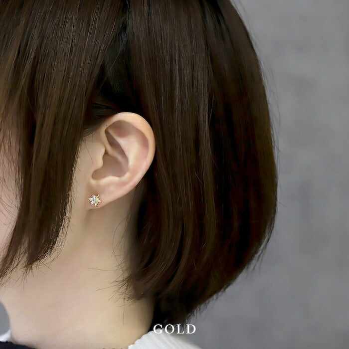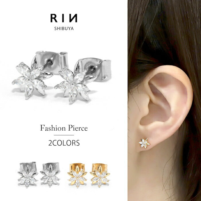 fp-127 ピアス 金属アレルギー 花 フラワー 18k 18金 つけっぱなし レディース シンプル シルバー ゴールド かわいい セカンドピアス 普段使い 金属アレルギー対応 チタンピアス ジュエル キュービックジルコニア セット 【両耳用・2個売り】