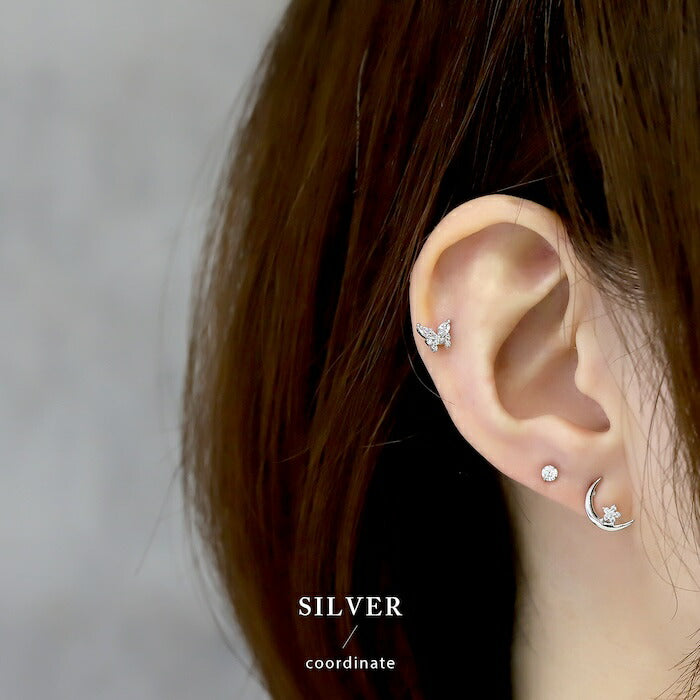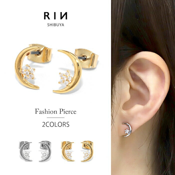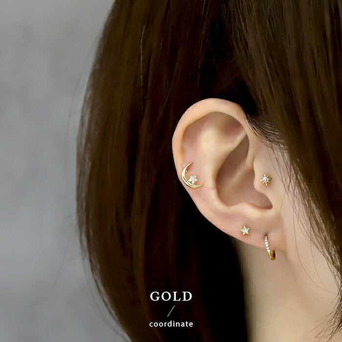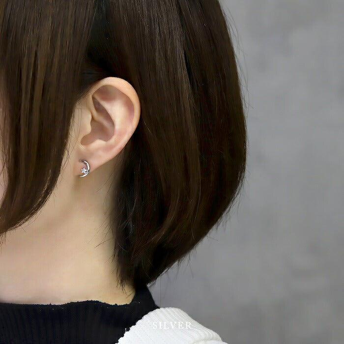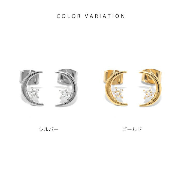 fp-129 ピアス 金属アレルギー 月 星 ムーン スター 18k 18金 レディース シンプル シルバー ゴールド かわいい セカンドピアス 普段使い 金属アレルギー対応 チタンピアス キュービックジルコニア セット 【両耳用・2個売り】