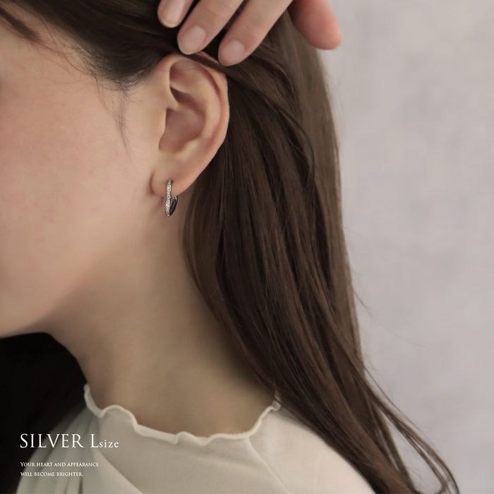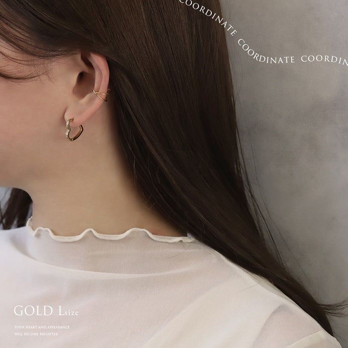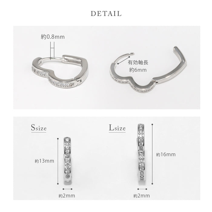 【両耳用・2個売り】 フープピアス ハートピアス CZ ジュエル 18k ロジウムコーティング アクセサリーカテ0147 fp-131