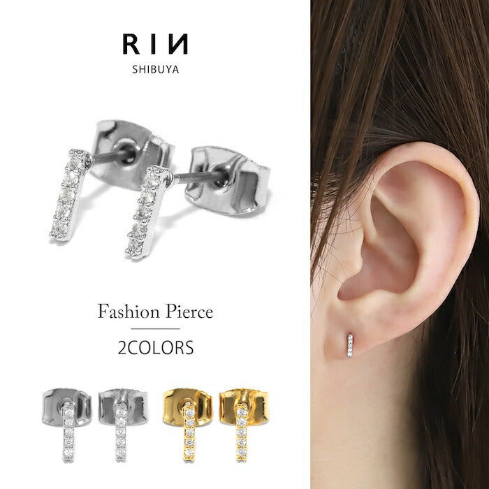 【両耳用・2個売り】チタン ピアス シンプル バー CZ スタッドピアス アクセサリーカテ0150 fp-133