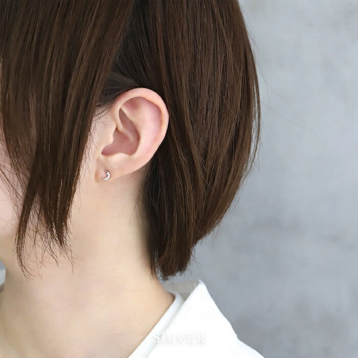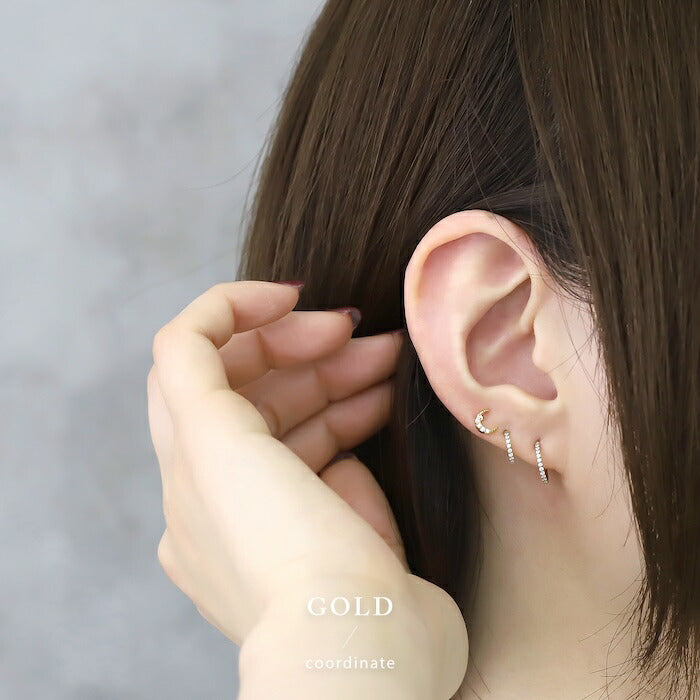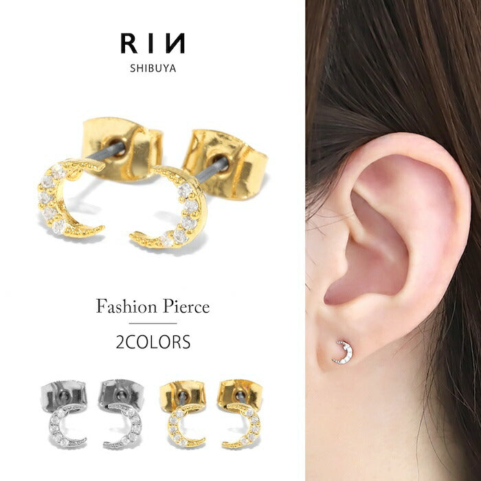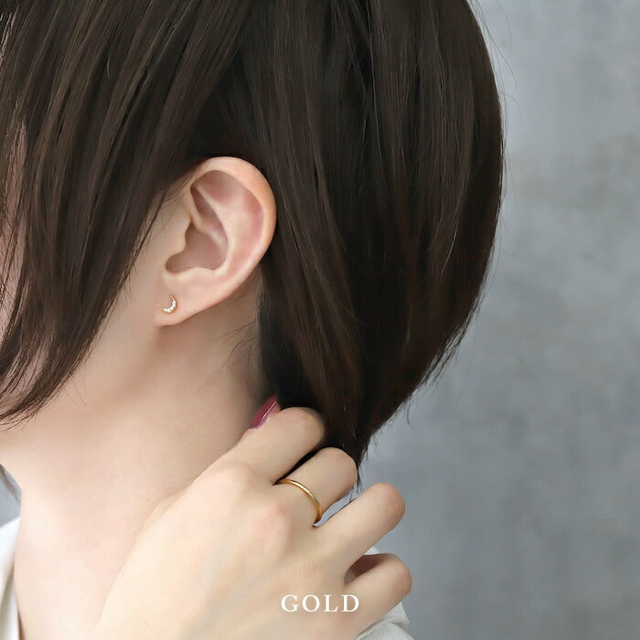 fp-135 ピアス 金属アレルギー 月 ムーン 18k 18金 レディース シンプル シルバー ゴールド つけっぱなし スタッドピアス かわいい セカンドピアス チタン 普段使い アクセサリー キュービックジルコニア ジュエル セット 【両耳用・2個売り】