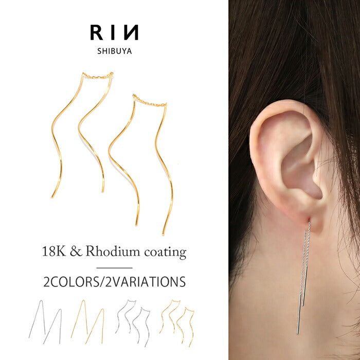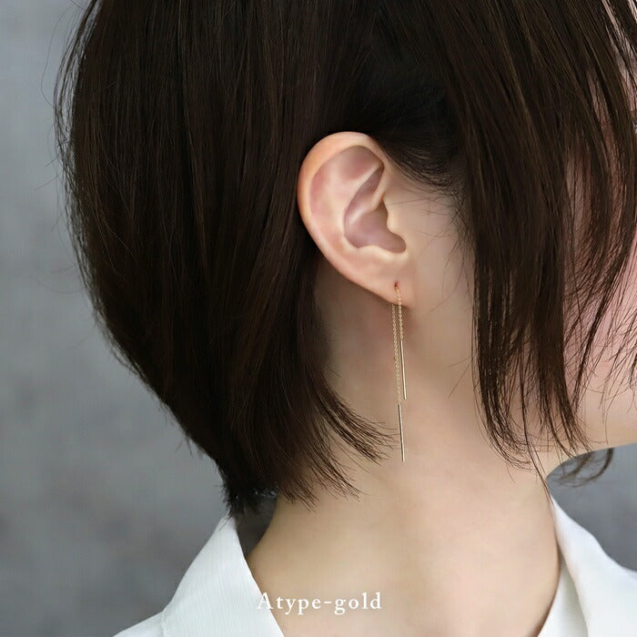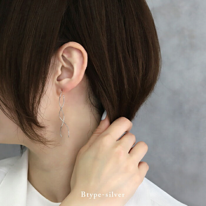 fp-138 ピアス 金属アレルギー レディース アメリカンピアス チェーン 揺れる スパイラル シンプル シルバー ゴールド 18k ロングピアス かわいい セカンドピアス ジルコニア 普段使い アクセサリー キュービックジルコニア 長め セット 【両耳用・2個売り】
