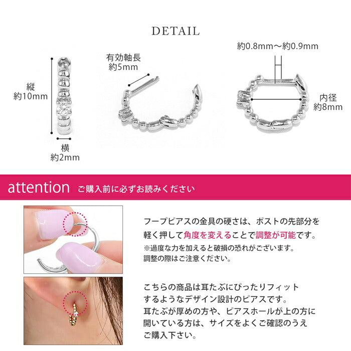 耳たぶが厚めの方やホールが上のほうに空いている方はサイズをよくご確認の上ご検討くださいませ。