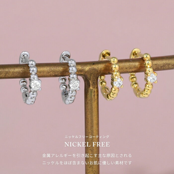fp-139 ピアス 金属アレルギー レディース フープピアス フープ シンプル シルバー ゴールド つけっぱなし かわいい セカンドピアス ニッケルフリー 普段使い 小さい アクセサリー キュービックジルコニア キャッチレス セット 【両耳用・2個売り】