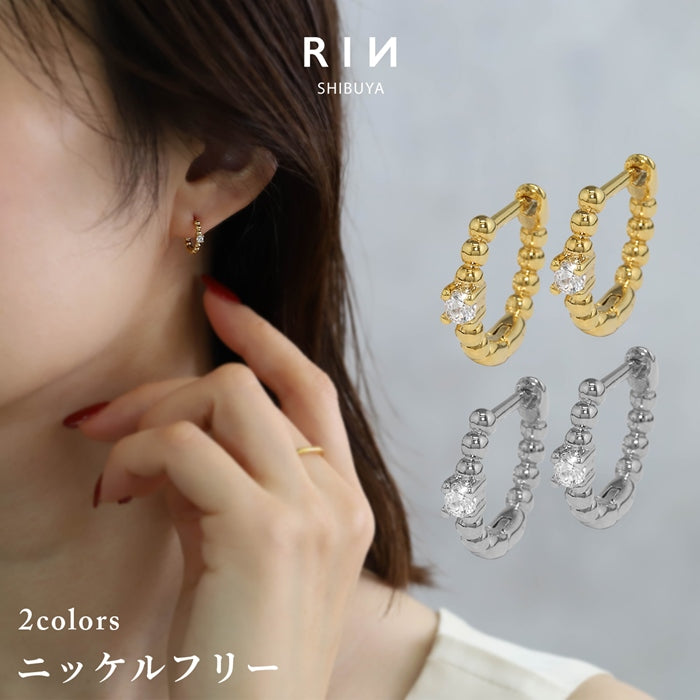 【両耳用・2個売り】ピアス フープピアス ニッケルフリー 一粒ジュエル アクセサリーカテ0156 fp-139