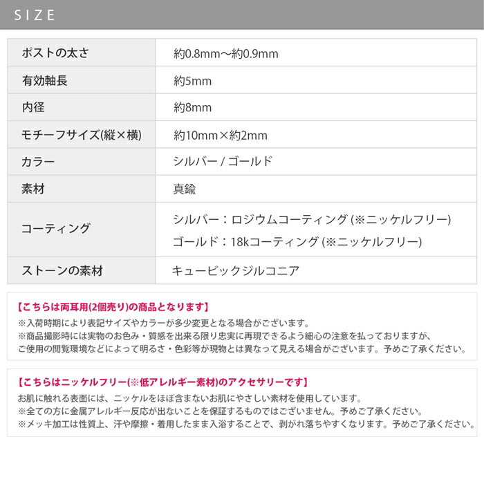 シルバー:ロジウムコーティング(ニッケルフリー) ゴールド:18kコーティング(ニッケルフリー)