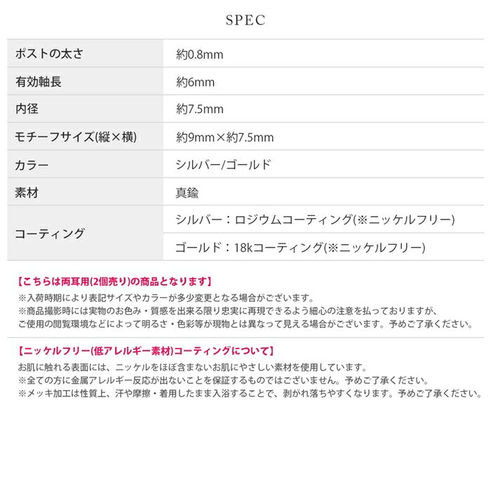 シルバー:ロジウムコーティング(※ニッケルフリー) ゴールド:18kコーティング(※ニッケルフリー)