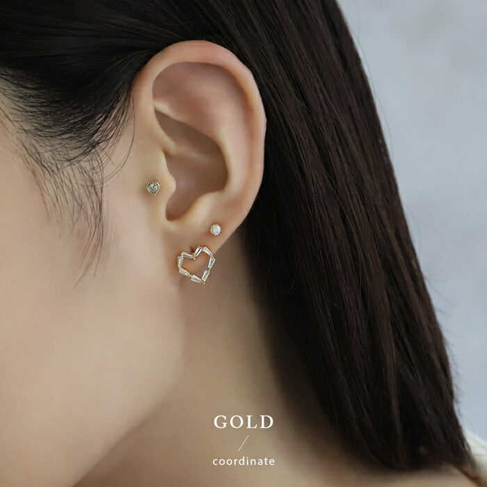 【両耳用・2個売り】チタンピアス シルバー ゴールド ハート CZストーン スタッドピアス アクセサリーカテ0162 fp-145