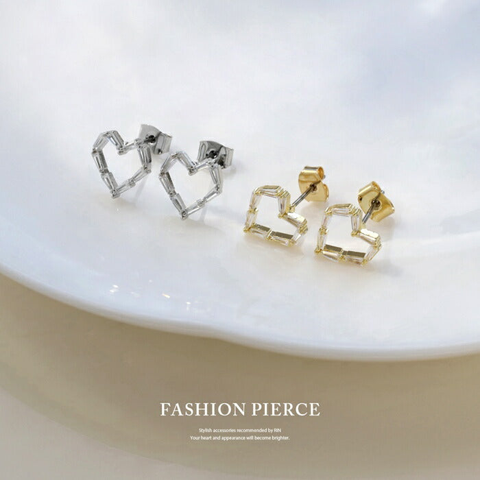 fp-145 ピアス 18k 金属アレルギー チタン 真鍮 ロジウム ハート レディース 女性 大人 キレイ おしゃれ かわいい キラキラ シンプル 上品 シルバー ゴールド デイリー 耳 高見え 普段使い【両耳用・2個売り】