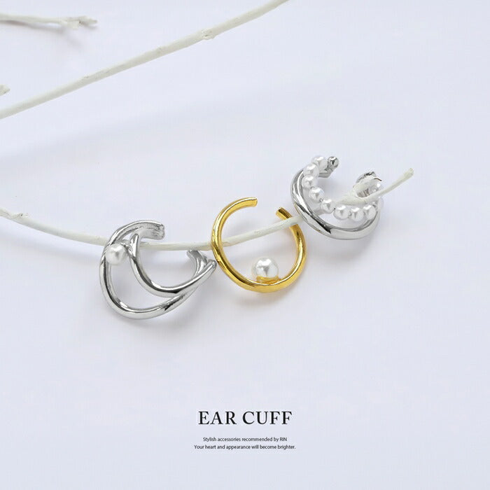 fp-148 イヤーカフ イヤーカフス イヤカフ イヤリング 真鍮 パール 真珠 リング フープ フェイクピアス レディース 女性 大人 きれい かわいい おしゃれ エレガンス キラキラ シンプル 大きめ シルバー ゴールド 普段使い 耳たぶ 片耳用