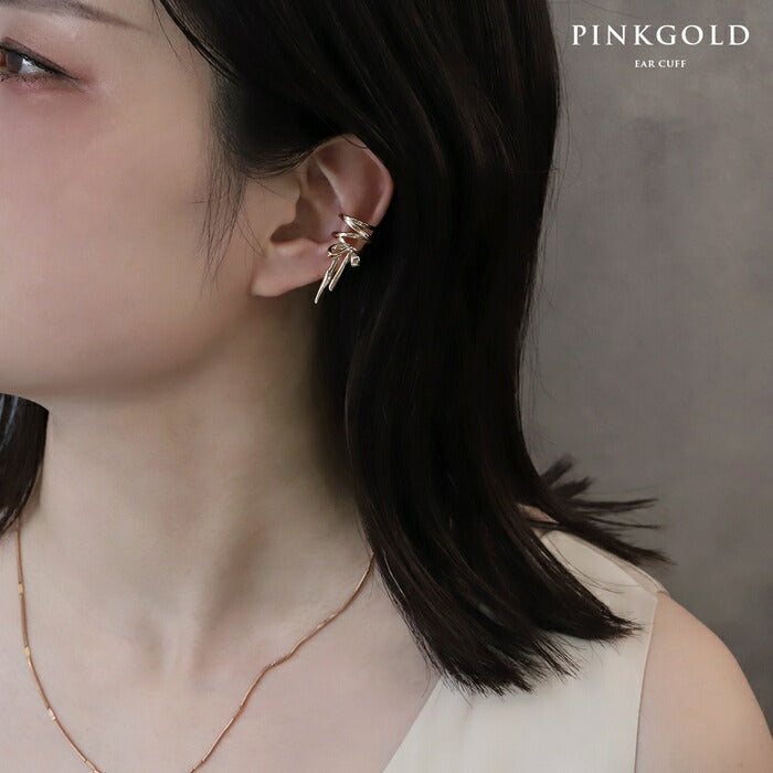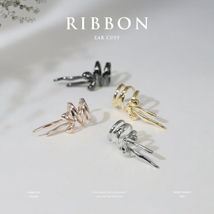 fp-156 イヤーカフ イヤカフ ニッケルフリー リボン コルセット 金属アレルギー 18k コーティング ロジウムコーティング バレエコア レースアップ かわいい ピンクゴールド ブラック 人気 トレンド カジュアル デイリー 日常使い デート お出かけ 片耳用