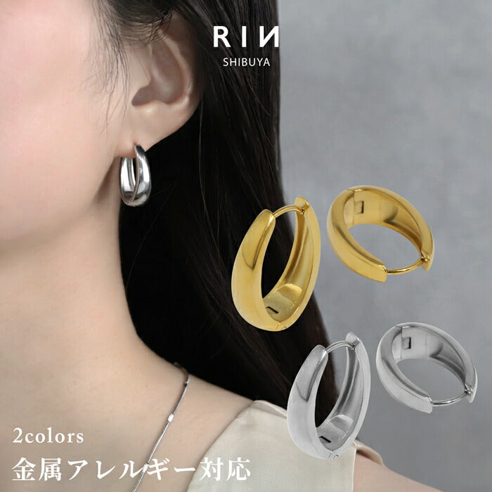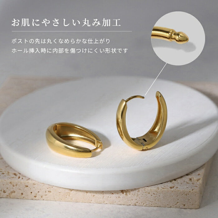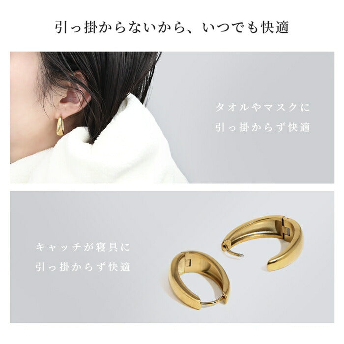 fp-160 ピアス 金属アレルギー対応 フープ つけっぱなし ドロップピアス PVDコーティング フープピアス リングピアス キャッチレス シンプル ワンタッチ シルバー ゴールド レディース 大人 高見え さりげない 上品 ステンレスピアス 大きめ 【両耳用・2個売り】
