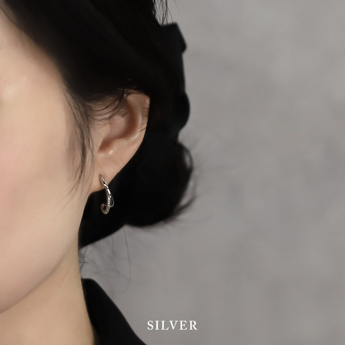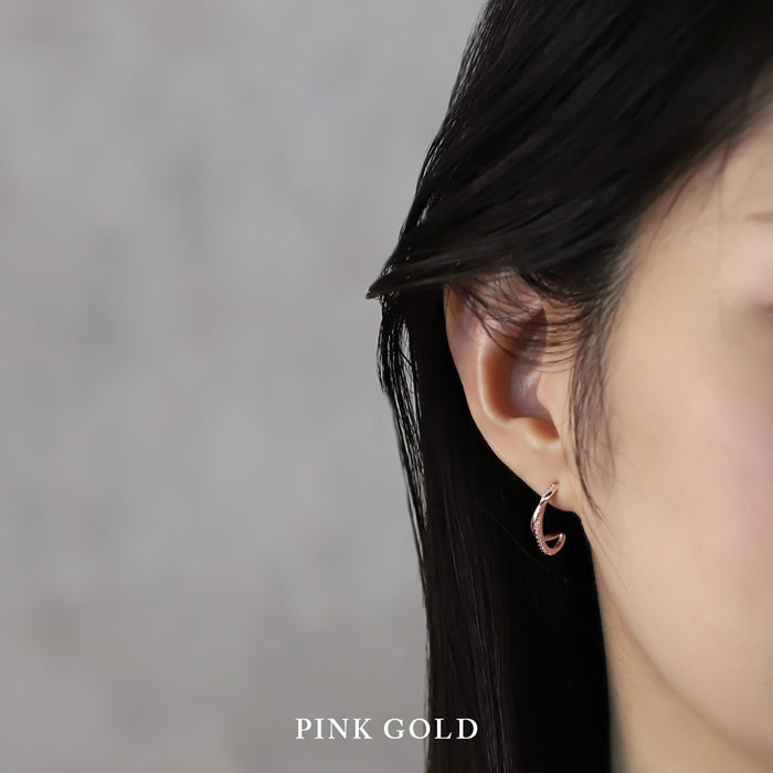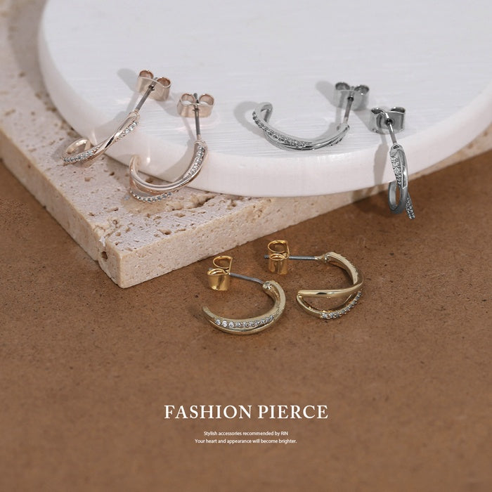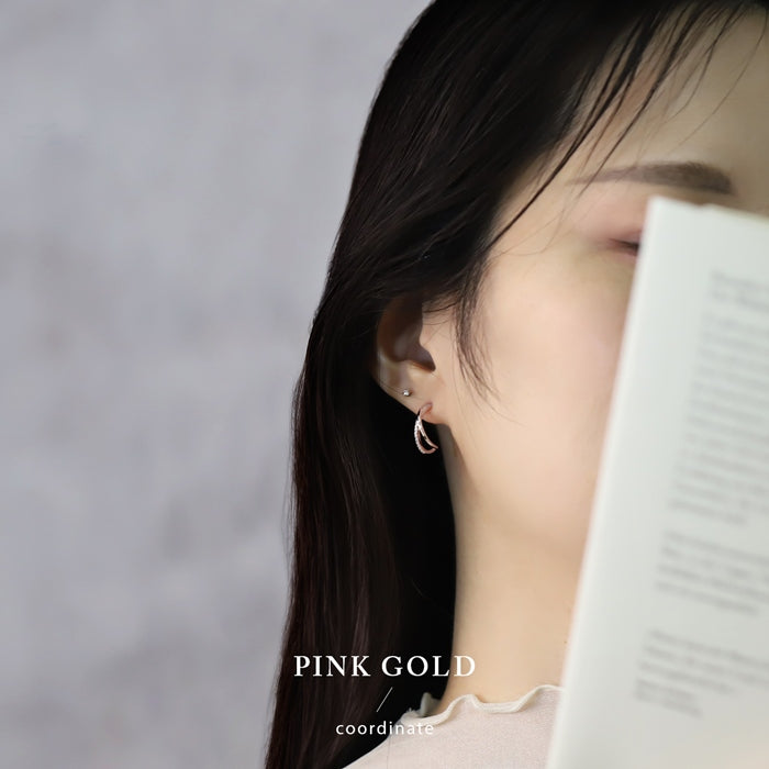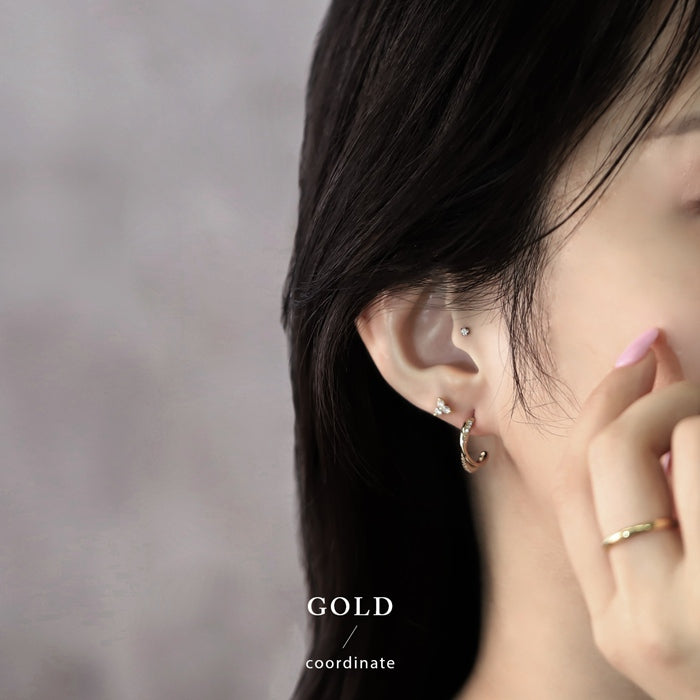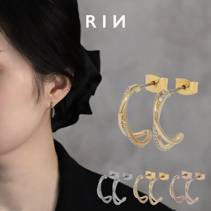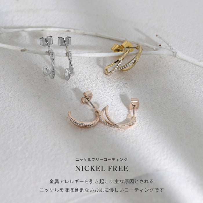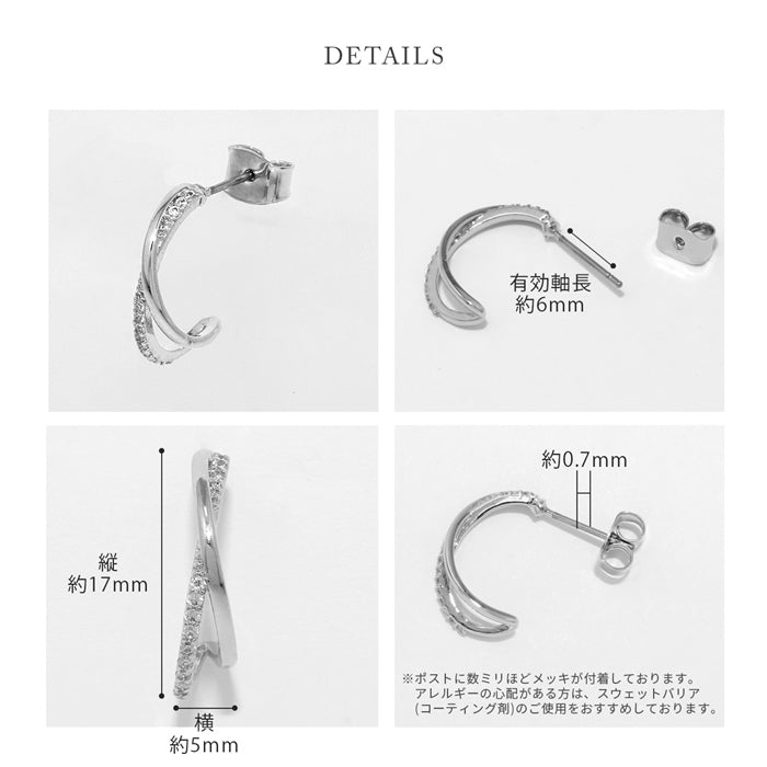 fp-162 ピアス チタンポスト 2連 ハーフフープ ジルコニア ニッケルフリー 18Kコーティング スタッド ファッションピアス 『両耳用・2個売り』
