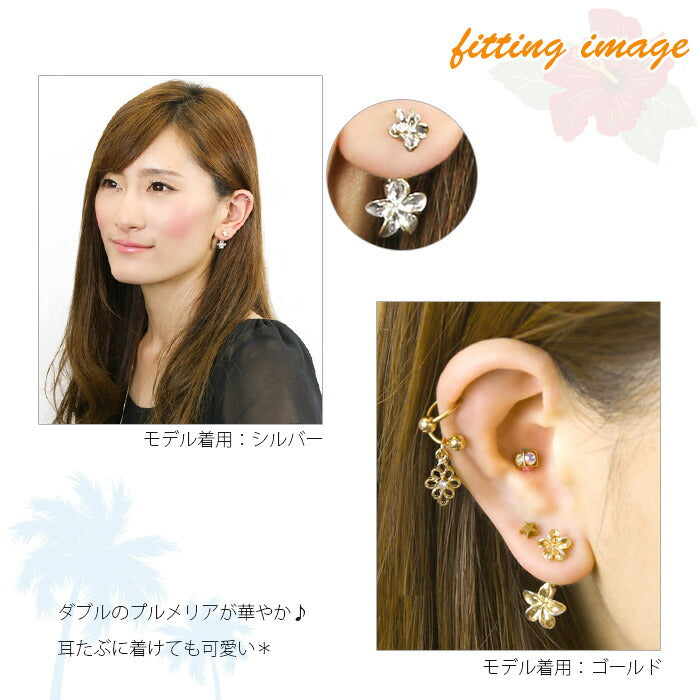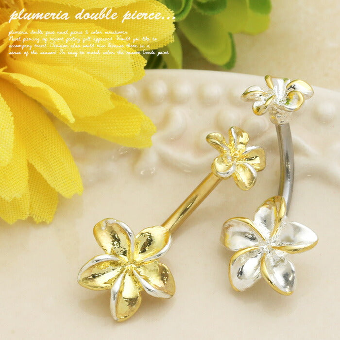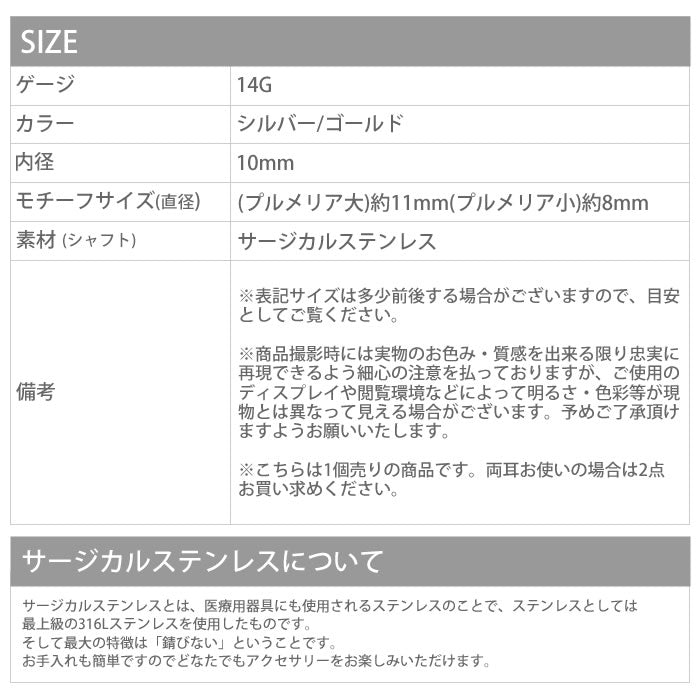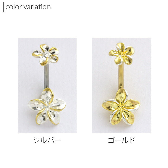【金属アレルギー対応】 へそピアス かわいい 14G ボディピアス ハワイアンジュエリー プルメリア 花 フラワー リゾート ダブルフェイス バナナバーベル サージカルステンレス 耳 軟骨