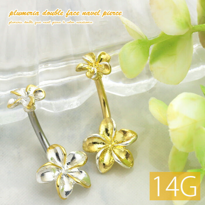 [14G]へそピアス0469/プルメリアダブルフェイスネイブルピアス