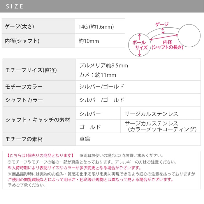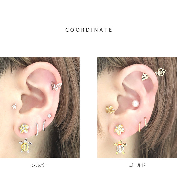 h1132-249 へそピアス ハワイアン ボディピアス 軟骨ピアス 14G つけっぱなし キャッチ サージカルステンレス ファーストピアス セカンドピアス シルバー ゴールド 亀 カメ タートル 花 フラワー ハワイアン 海 ボディピ 耳たぶ 片耳用 凛 RIN