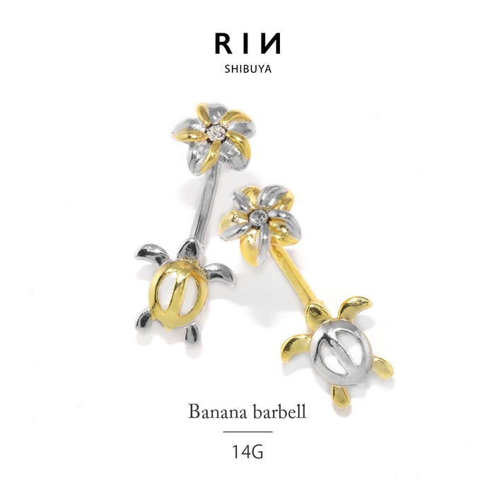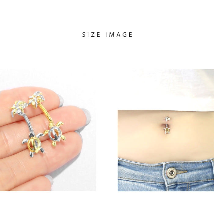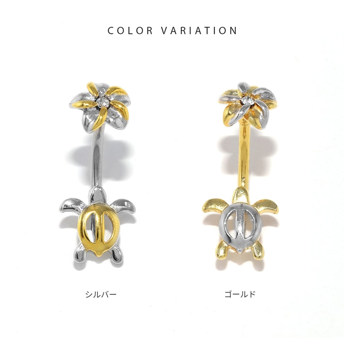 [14G]へそピアス0470/プルメリア&タートルダブルフェイスネイブルピアス