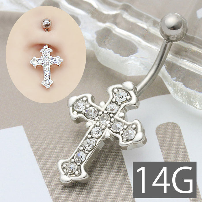 | ジュエルの輝きで存在感抜群!スタイリッシュジュエルクロスへそピアス |