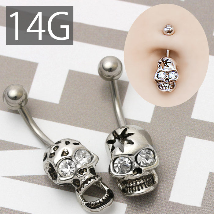 【金属アレルギー対応】 へそピアス シンプル ボディピアス 軟骨ピアス 14G キャッチ サージカルステンレス ファーストピアス スカル 髑髏 メンズ シルバー ジュエル スタイリッシュ バナナバーベル ボディーピアス 片耳用
