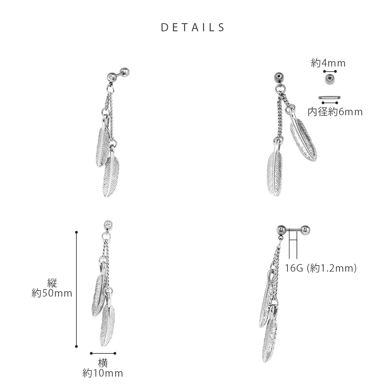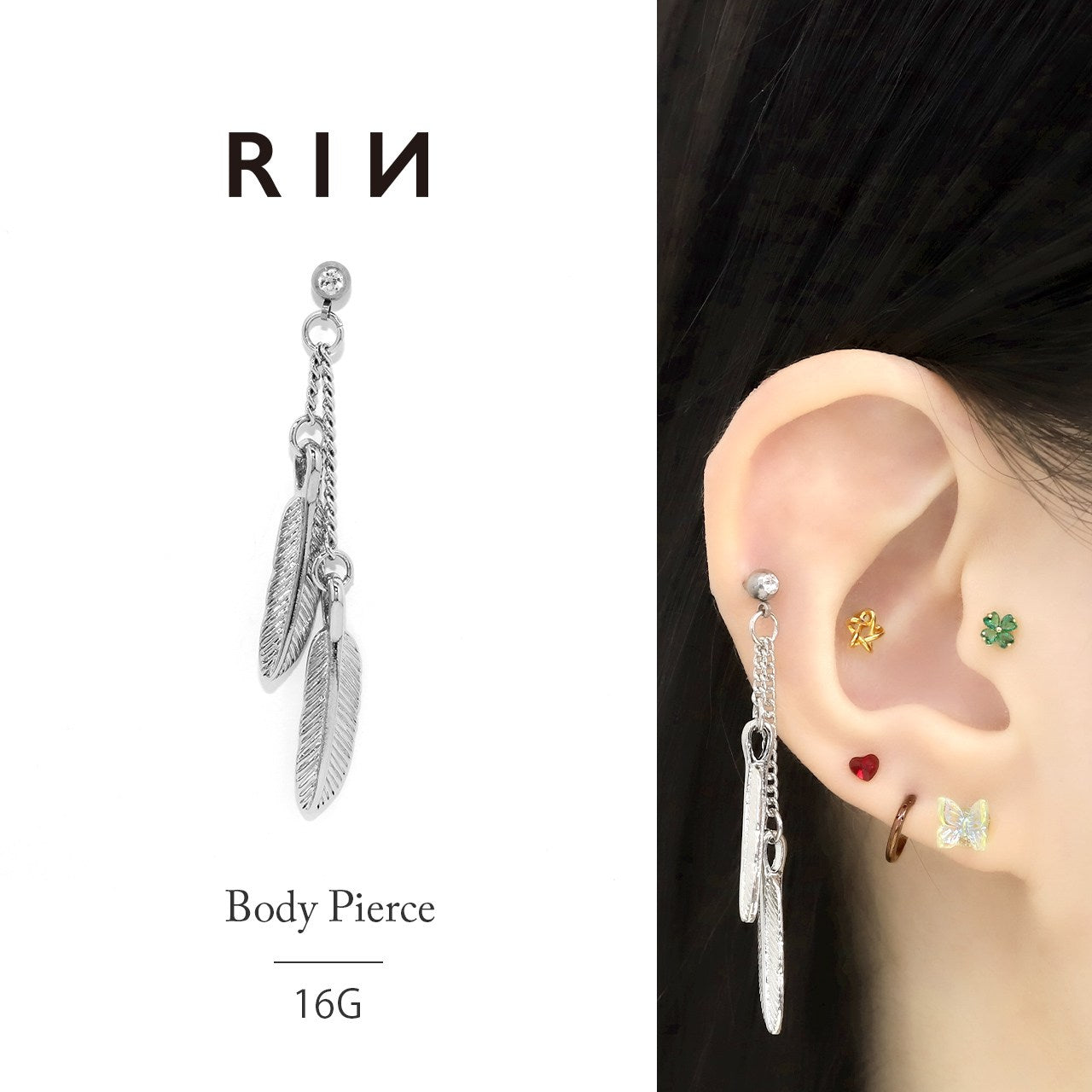 h1132-274 ボディピアス チェーン 羽根 16G フェザー 軟骨 スタイリッシュ 片耳用 金属アレルギー対応 ヘリックス 揺れる
